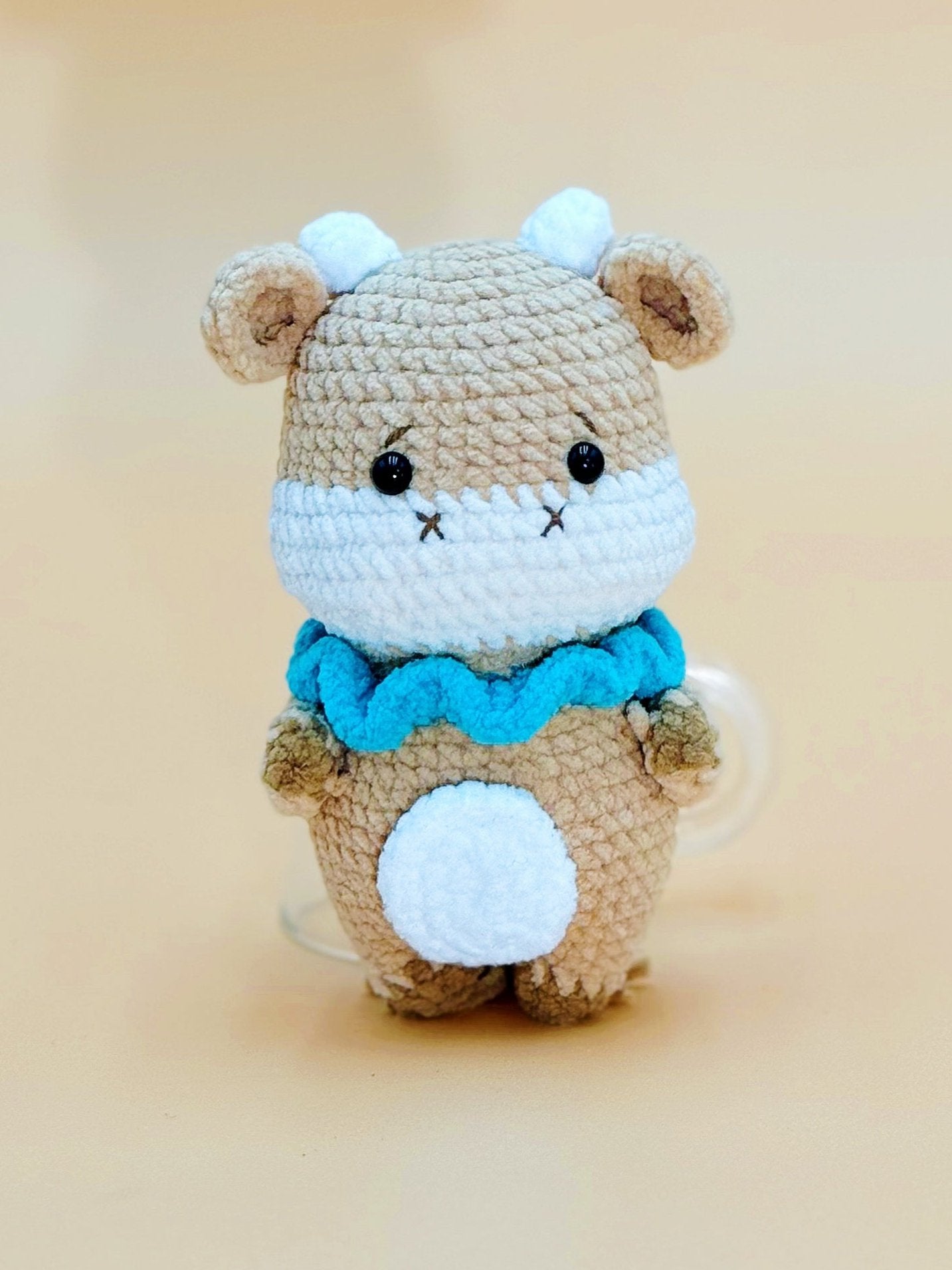 A cute crochet figure of a cow, showcasing its iconic spots and friendly demeanor. Handcrafted with soft yarns and thoughtful details, this figure adds a touch of rustic charm and whimsy to any space. Perfect for farm animal enthusiasts and those who love unique, handmade decor!