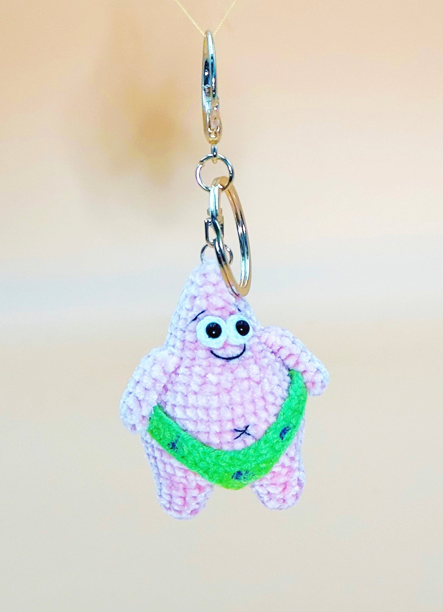 Join the underwater adventures with this delightful crochet keychain featuring the lovable starfish, from Bikini Bottom! Handcrafted with meticulous care and attention to detail, this keychain captures all the charm and goofiness of everyone's favorite pink star.