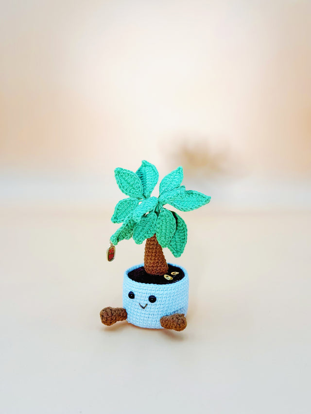 Introducing our charming Money Tree Crochet Pot! This delightful piece features bright, cheerful greenie intricately crocheted by hand, nestled in a soft, textured pot. The vibrant flowers bring a touch of sunshine to any space, making it perfect for brightening up your desk, windowsill, or as a thoughtful gift. The delicate craftsmanship and rich green hues create a cozy, yet stylish, decor item that effortlessly enhances any room's ambiance. Whether for your home or office, this crochet pot adds a splash of color and a heartwarming, handmade touch to your surroundings.