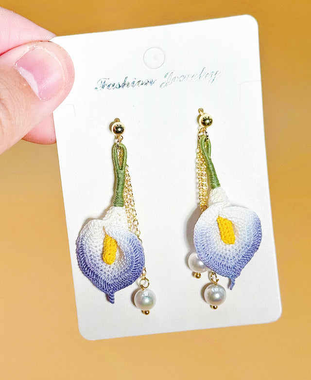 Delicately handcrafted with exquisite detail, our Micro Crochet Cala Lily Earrings. These elegant Cala Lily Earrings are perfect for adding a touch of nature-inspired beauty to any outfit. Made from high-quality, lightweight materials, they offer comfort without compromising on style. Ideal for nature lovers and those who appreciate the art of crochet.