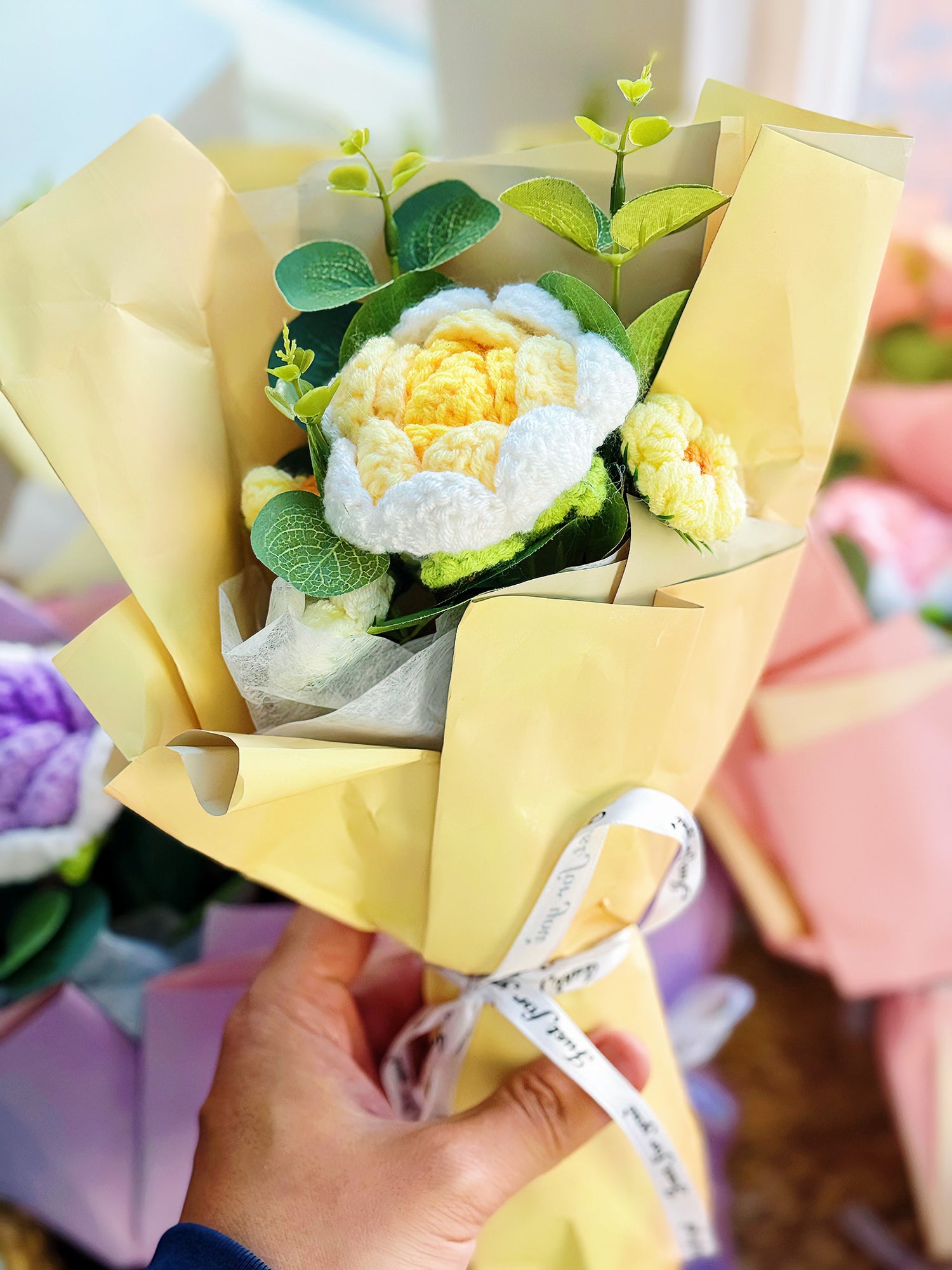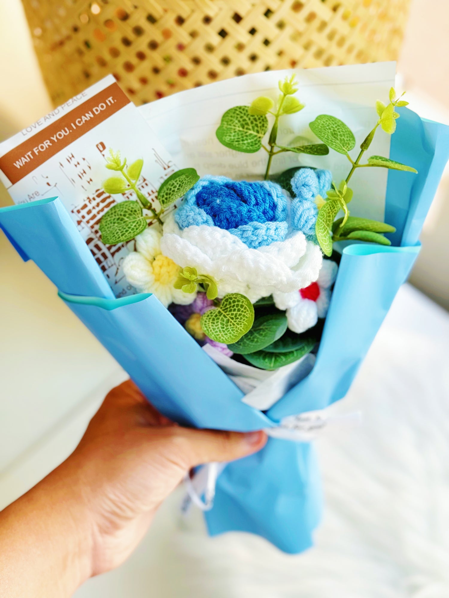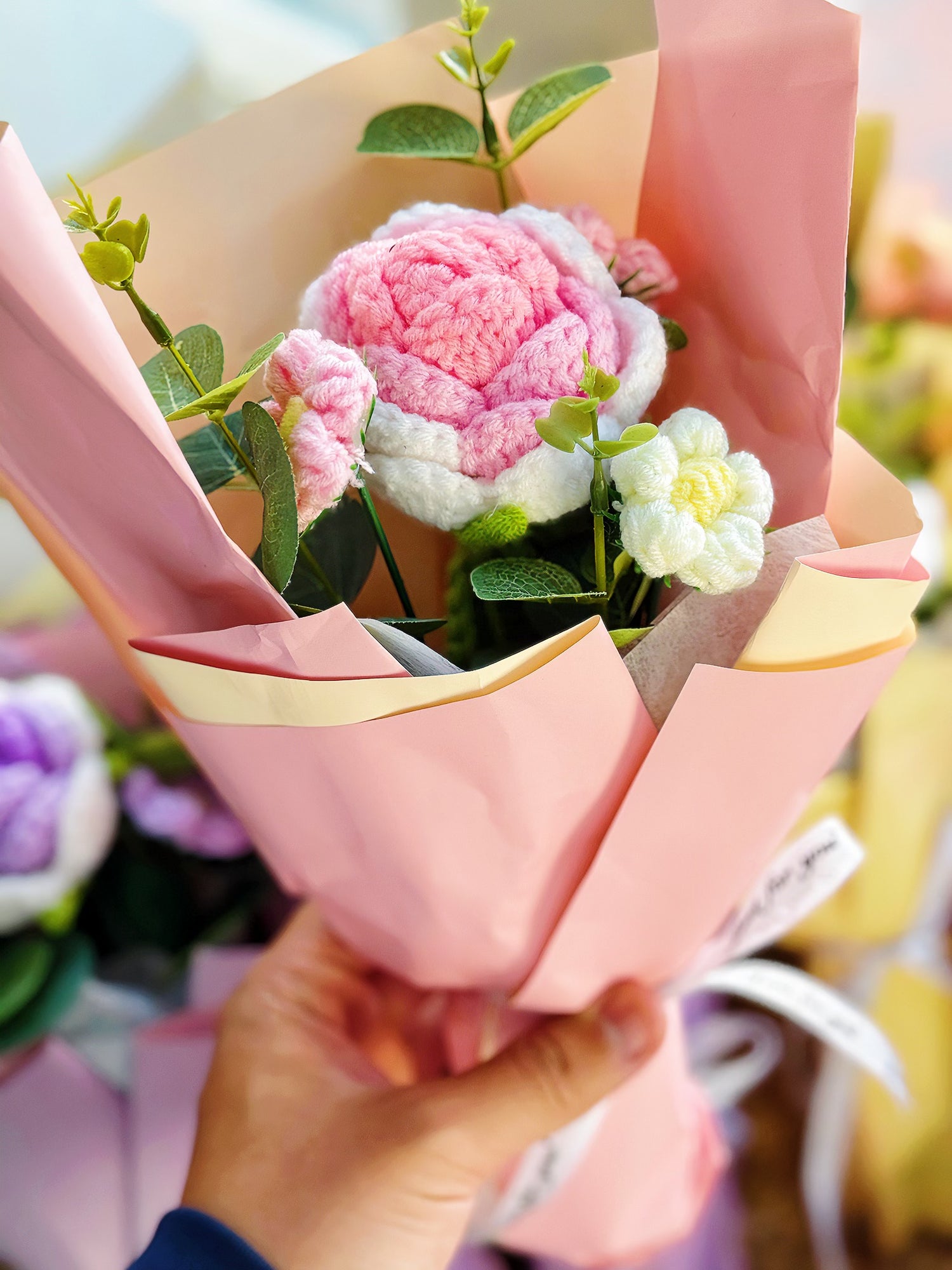 Elevate your space with the enchanting beauty of our Gradient Color Single Rose Crochet Bouquet. Crafted with exquisite attention to detail, each bouquet features three stunning roses in a mesmerizing gradient of colors. Handmade with care, these everlasting roses bring a touch of natural elegance to any room or occasion. Whether adorning your home or gifting to a loved one, our crochet bouquet is sure to captivate with its timeless charm and artful craftsmanship. Embrace the allure of everlasting beauty today.