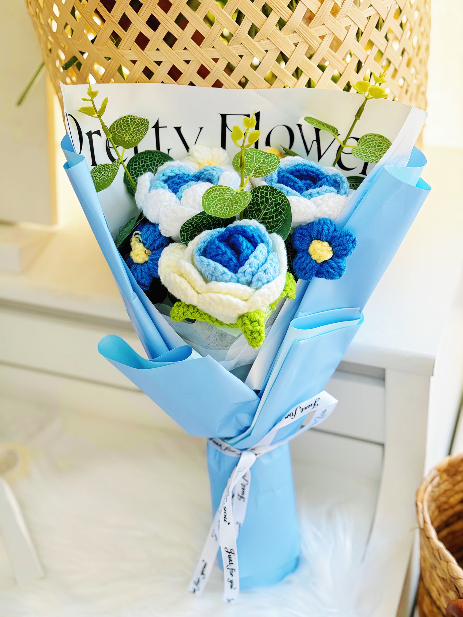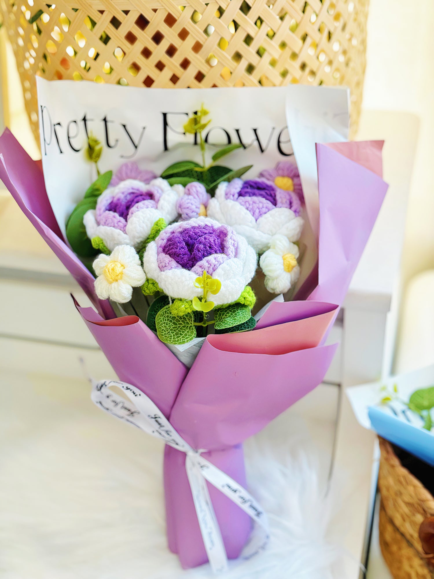 Elevate your space with the enchanting beauty of our Gradient Color Triple Roses Crochet Bouquet. Crafted with exquisite attention to detail, each bouquet features three stunning roses in a mesmerizing gradient of colors. Handmade with care, these everlasting roses bring a touch of natural elegance to any room or occasion. Whether adorning your home or gifting to a loved one, our crochet bouquet is sure to captivate with its timeless charm and artful craftsmanship. Embrace the allure of everlasting beauty today.