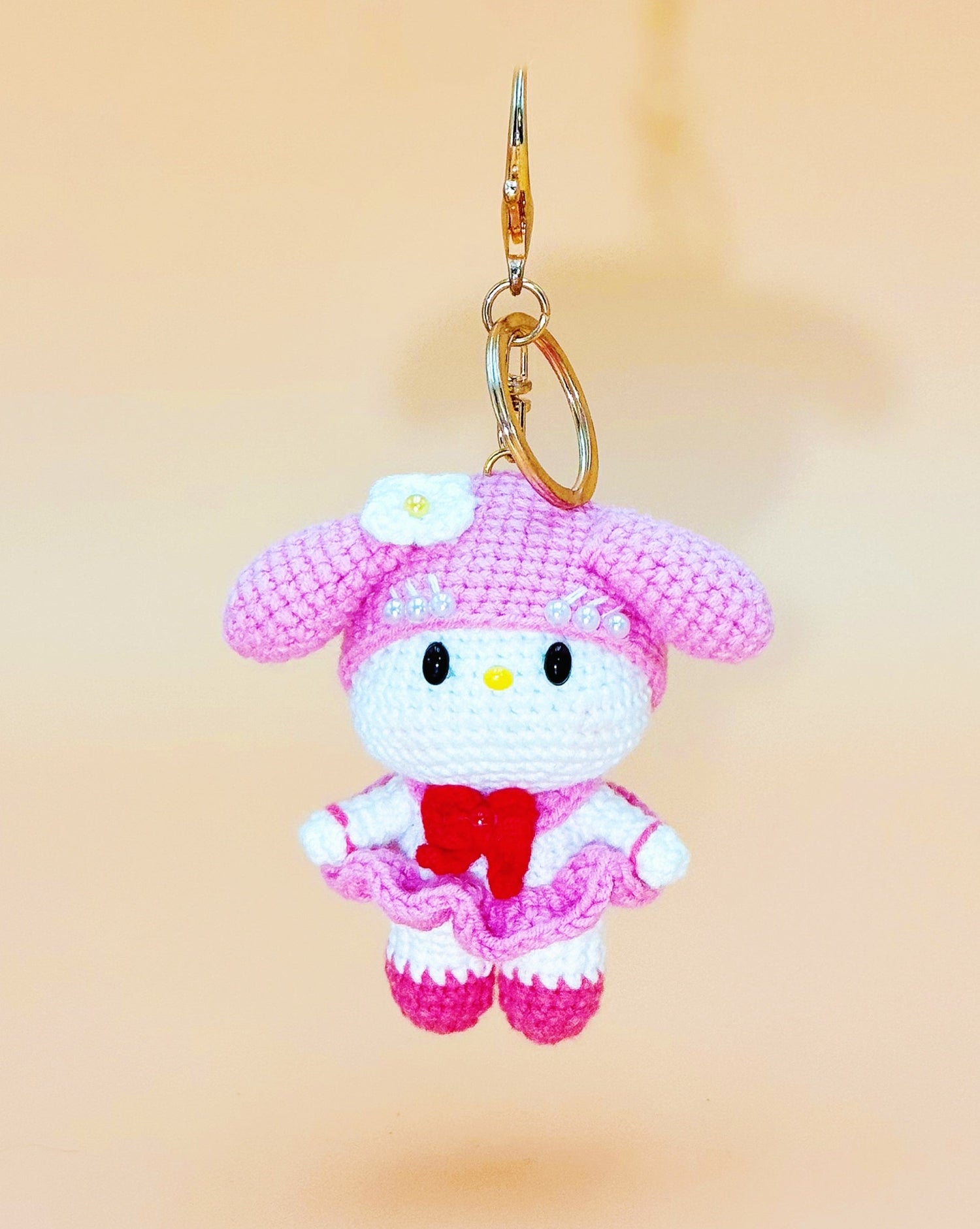 With its soft pastel colors and intricate crochet design, Melody Kitten is sure to bring a smile to your face every time you see her. Attach her to your keys, bag, or backpack, and let this adorable character accompany you on all your adventures.