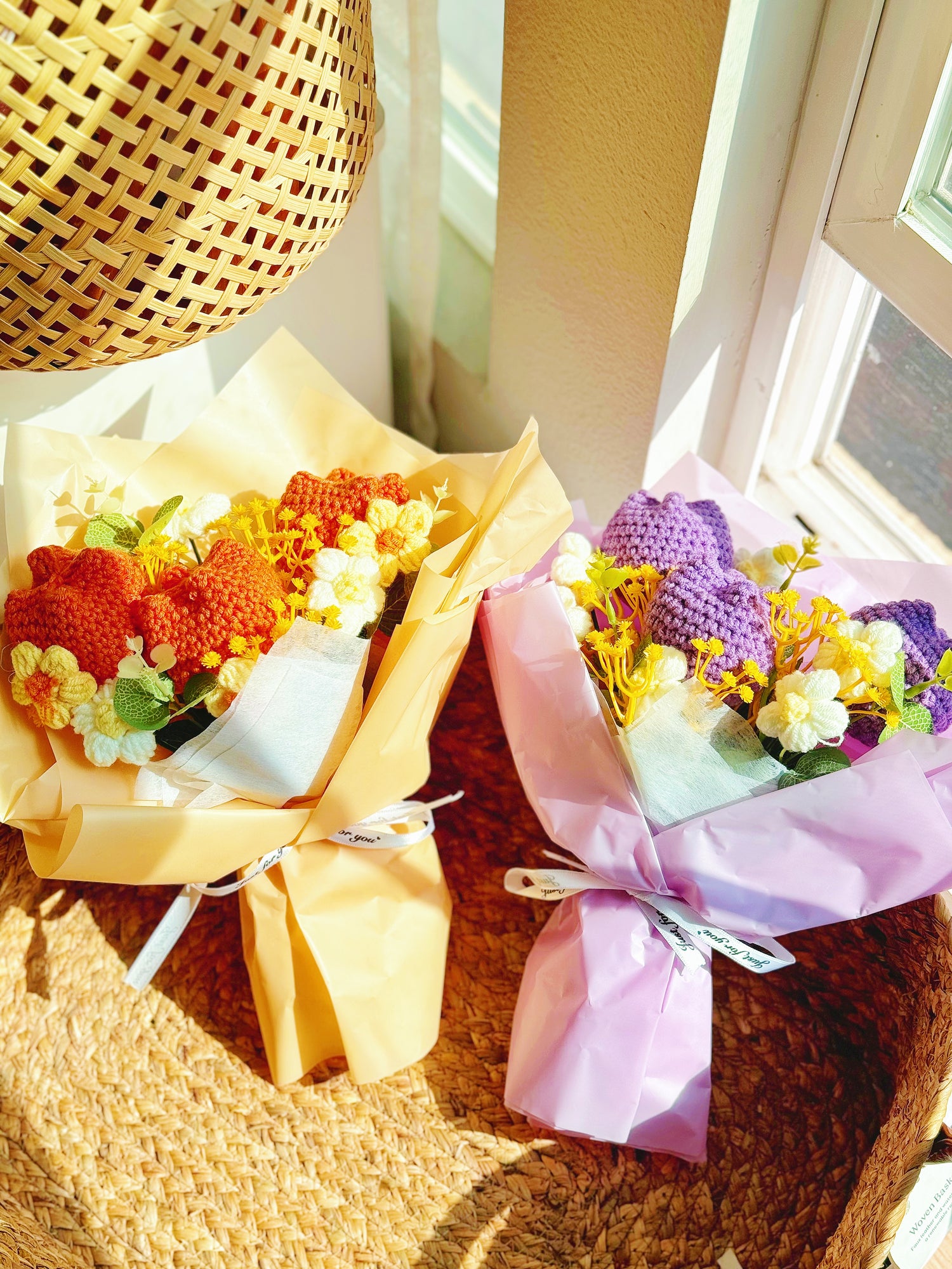 Brighten up any room with our Tulipe Crochet Bouquet, a delightful fusion of warmth and craftsmanship. Each bouquet features vibrant Tulipe meticulously handcrafted with care, showcasing intricate crochet work that captures the essence of these iconic blooms. Radiating with cheerful charm, these everlasting sunflowers bring a touch of joy and sunshine to any space they grace. Whether adorning your home or given as a thoughtful gift, our crochet bouquet is a beautiful way to spread happiness and brighten someone's day. Embrace the timeless beauty of sunflowers with our exquisite Tulipe Crochet Bouquet today.
